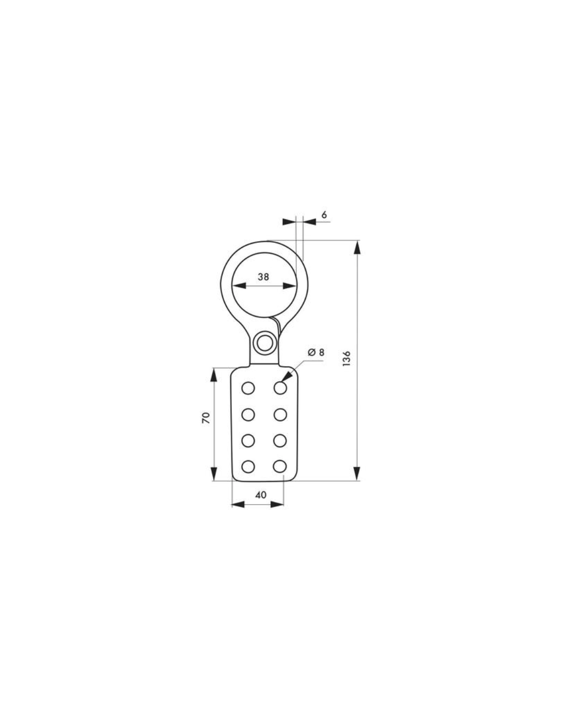 Cadenas THIRARD avec mâchoire en aluminium Ø 6 mm, isolée par une coque ABS. La mâchoire comporte 8 trous (Ø intérieur 38 mm) et ne peut être ouverte qu’après retrait de tous les cadenas. Léger et sécurisé, idéal pour une condamnation multiple.