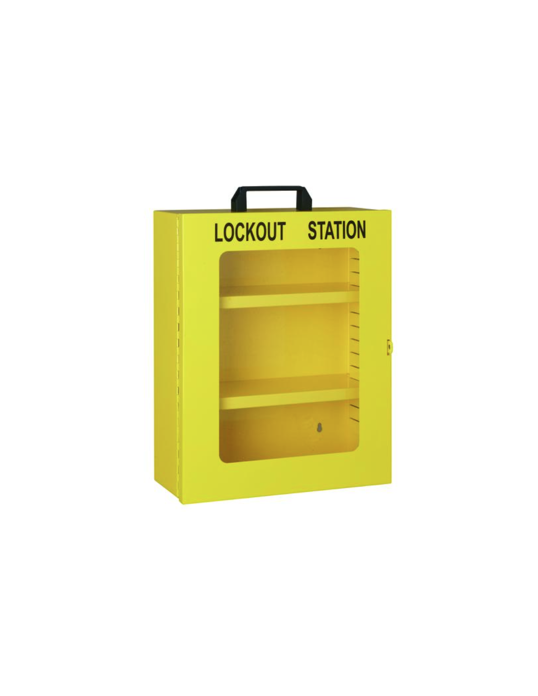 Armoire de consignation THIRARD conçue pour le rangement sécurisé des dispositifs de consignation. Dotée d’un corps en ABS, elle se verrouille par cadenas et peut être fixée au mur pour une installation pratique. Dimensions : H 450 × L 360 × P 155 mm, idéale pour un usage industriel.