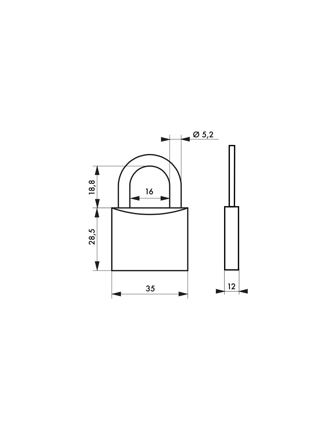Corps laiton monobloc. Anse acier cémenté nickelé. Mécanisme à goupilles. Double ancrage. 2 clés acier nickelé.