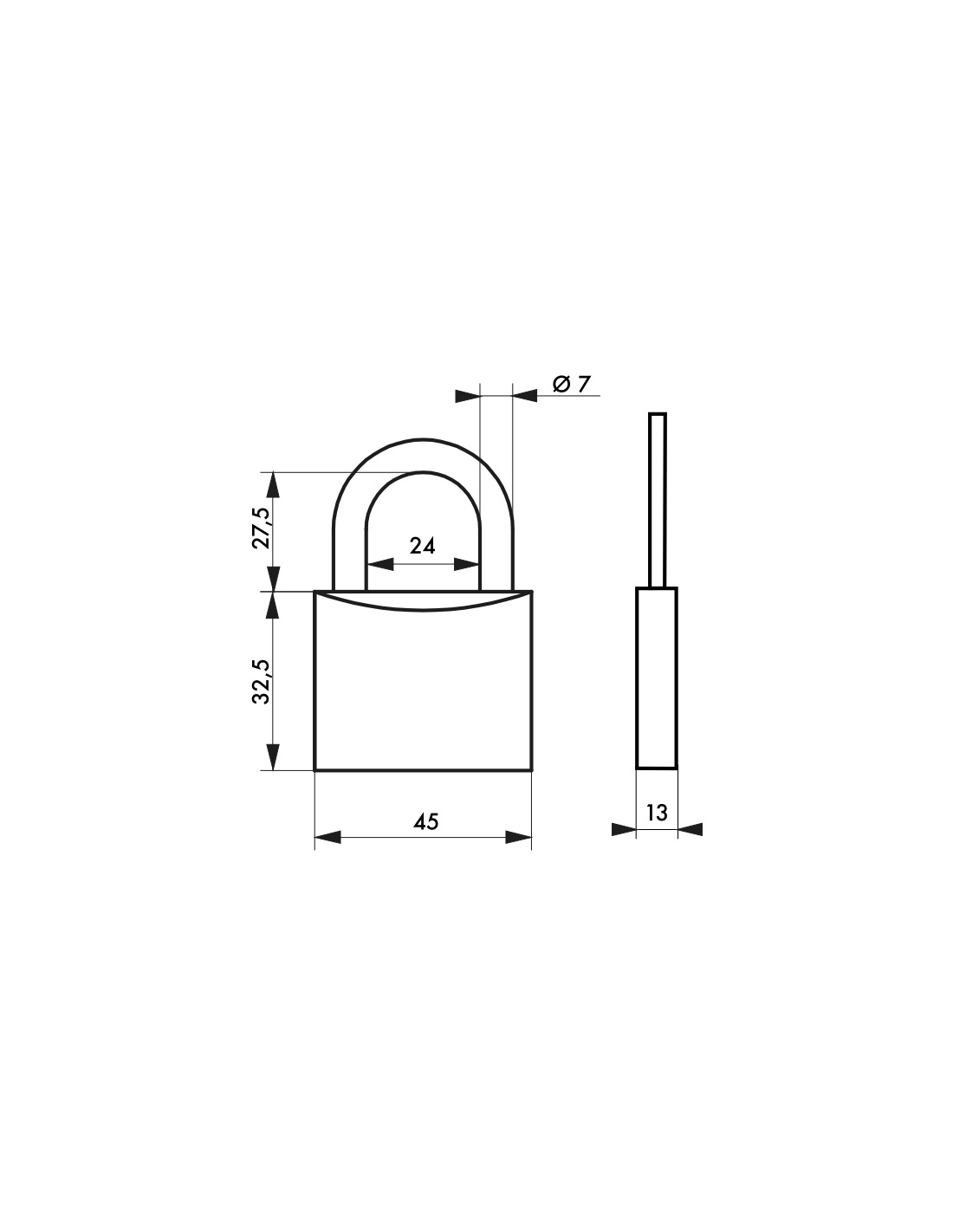 Corps laiton monobloc. Anse acier cémenté nickelé. Mécanisme à goupilles. Double ancrage. 2 clés acier nickelé.