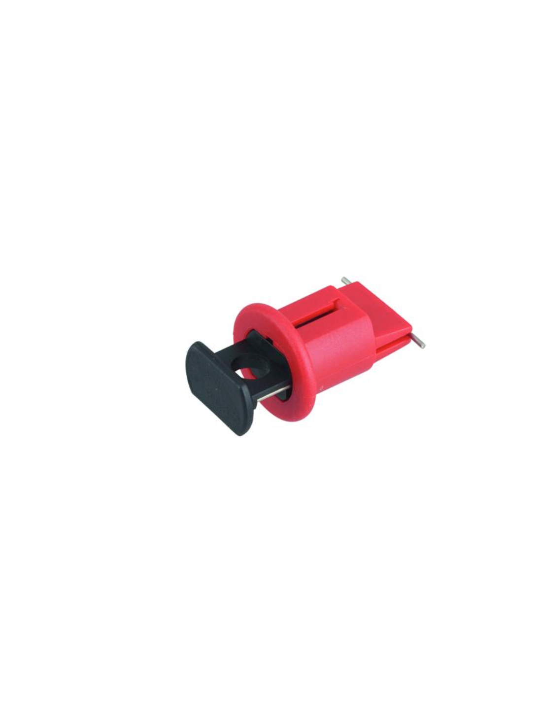 Dispositif de consignation THIRARD Push Out Large en ABS rouge, conçu pour les disjoncteurs à bascule de 20 mm. Se verrouille facilement par un cadenas à anse de < 7 mm, avec prise par l’intérieur, et est conditionné en boîte individuelle pour un usage pratique et sécurisé.
