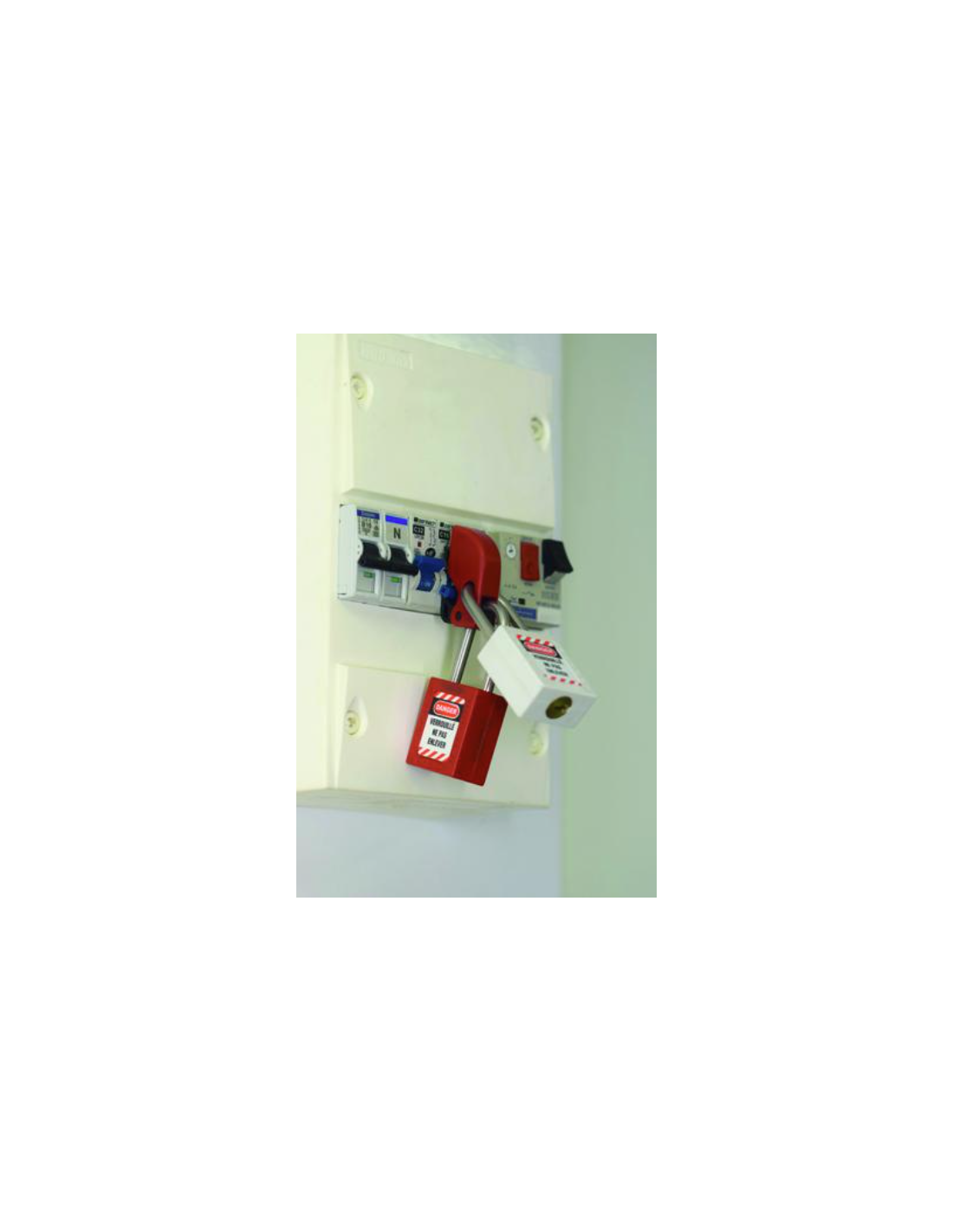 Petit dispositif de consignation THIRARD en nylon armé, conçu pour les disjoncteurs à interrupteurs à bascule. Verrouillage simple par cadenas, offrant une sécurité fiable et universelle sur deux positions.