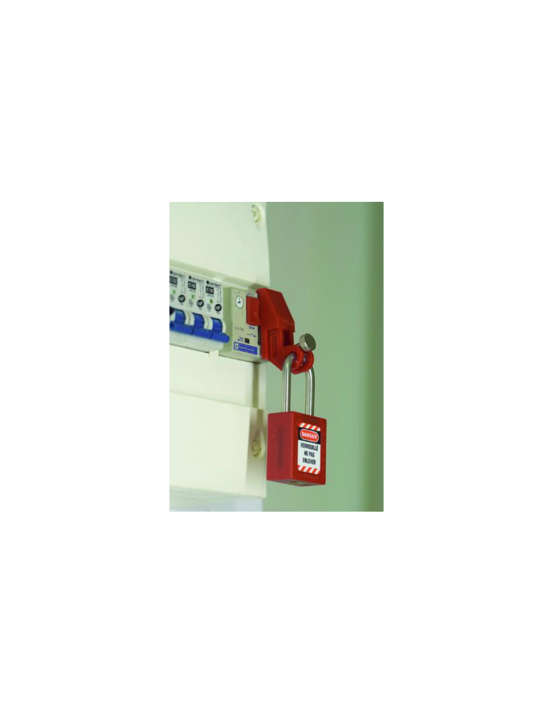 Dispositif de consignation THIRARD pour disjoncteur magnéto-thermique petit, en nylon armé robuste. Compatible avec les disjoncteurs à interrupteurs à bascule, il se verrouille facilement par cadenas pour garantir une sécurité efficace et prévenir toute remise sous tension non autorisée.
