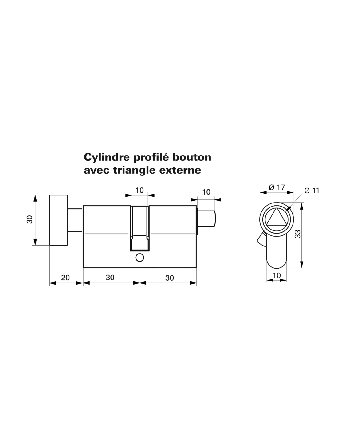 Cylindre à bouton triangle externe 11 profilé HG, laiton - THIRARD