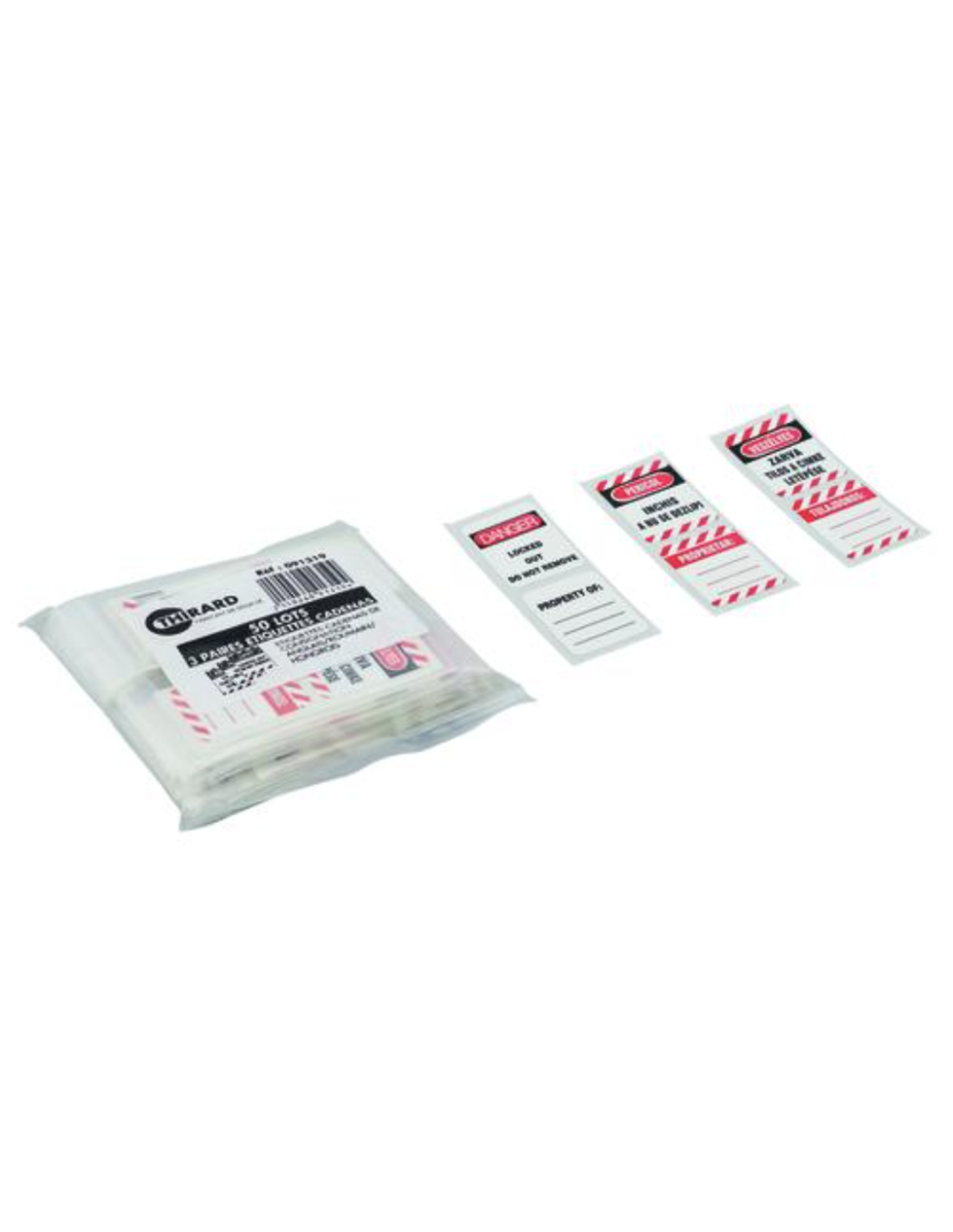 Ce lot d’étiquettes pour 50 cadenas est spécialement conçu pour faciliter l’identification et la consignation de vos équipements.