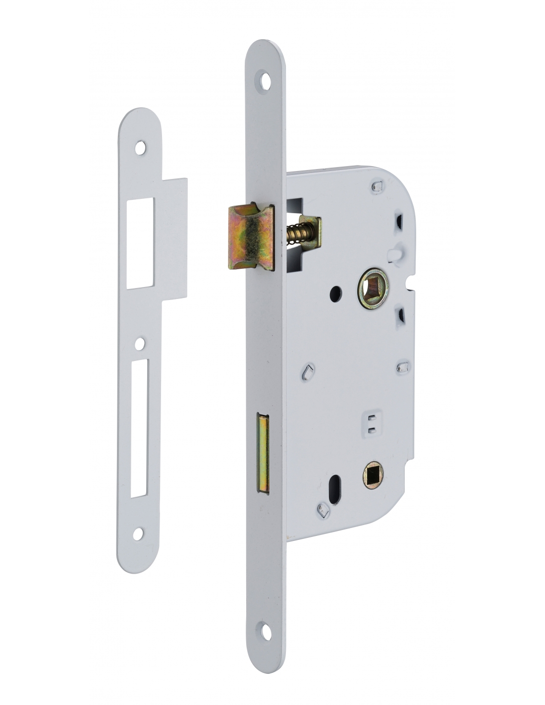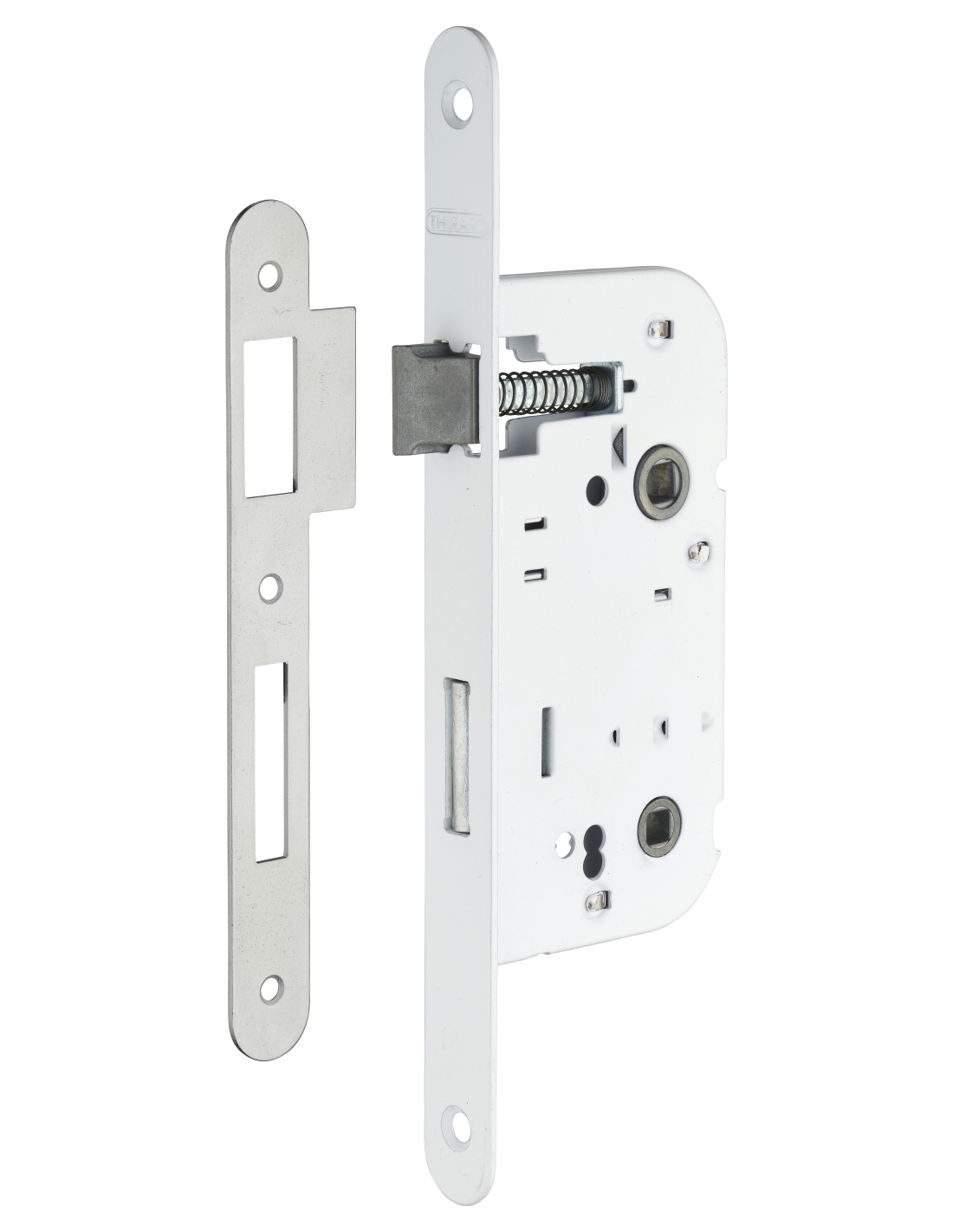 Serrure encastrable à condamnation pour porte de salle de bain et toilettes, axe 50mm, bouts ronds, - THIRARD