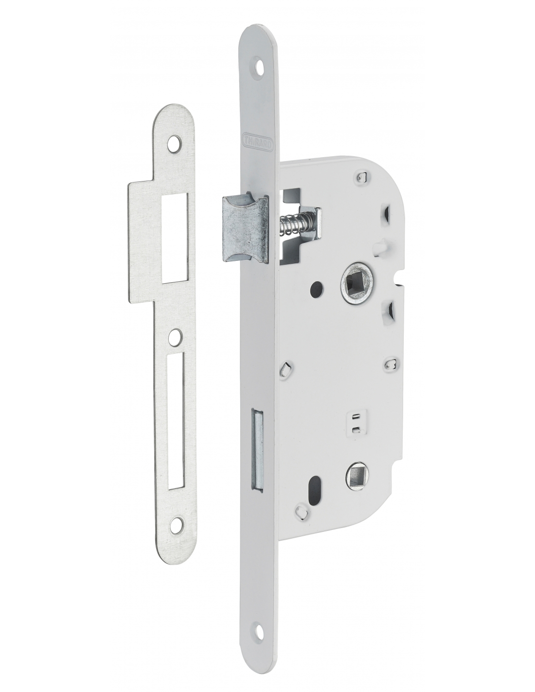 Serrure à encastrer à condamnation pour salle de bain et toilette, axe 40mm, bouts ronds, blanc - THIRARD FBA