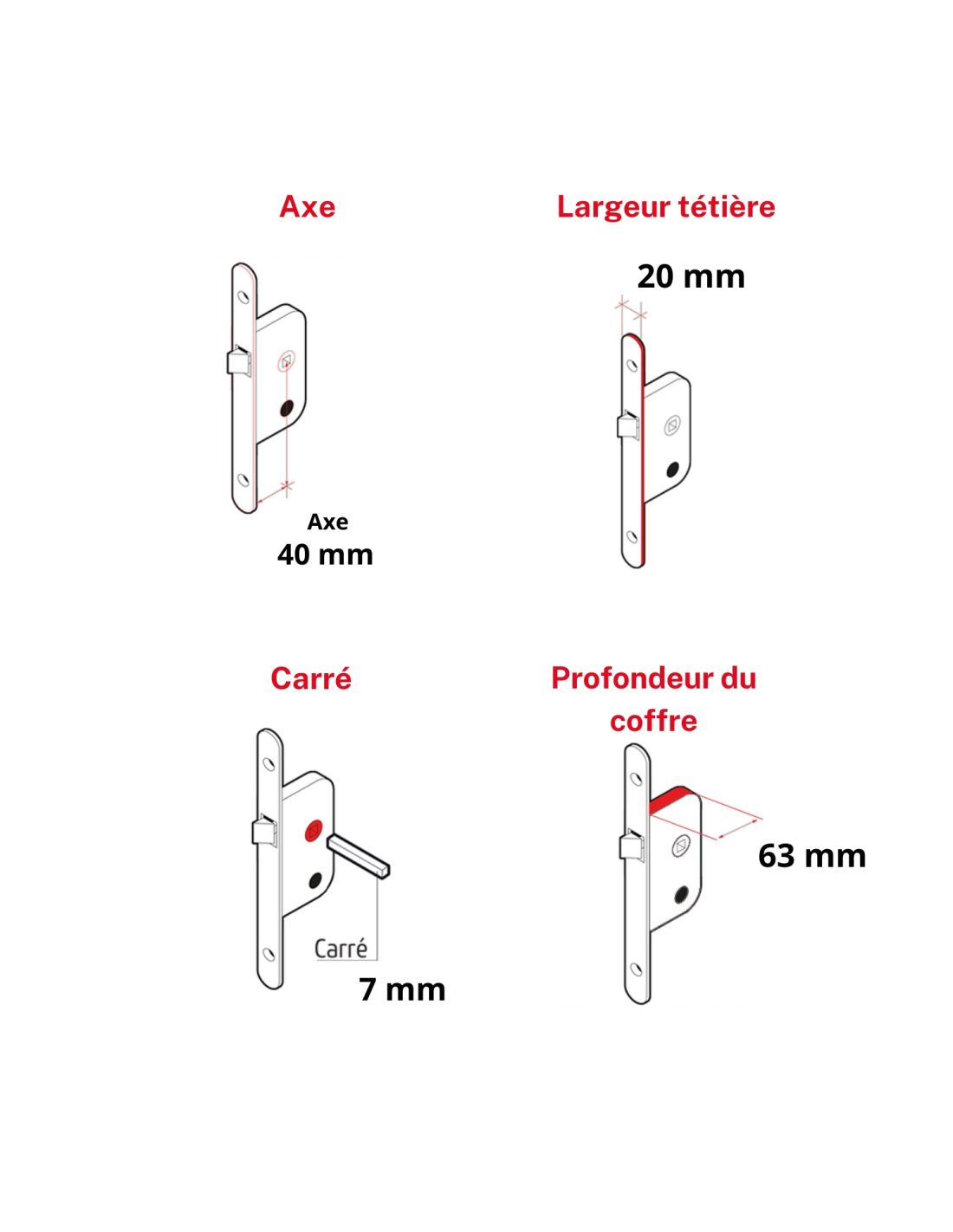 Conçue pour les portes intérieures (salle de bain, toilettes) nécessitant un système de condamnation simple. Elle dispose d’un axe de 40 mm et d’un entraxe de 70 mm, ce qui est une configuration courante dans ce type d’installation.