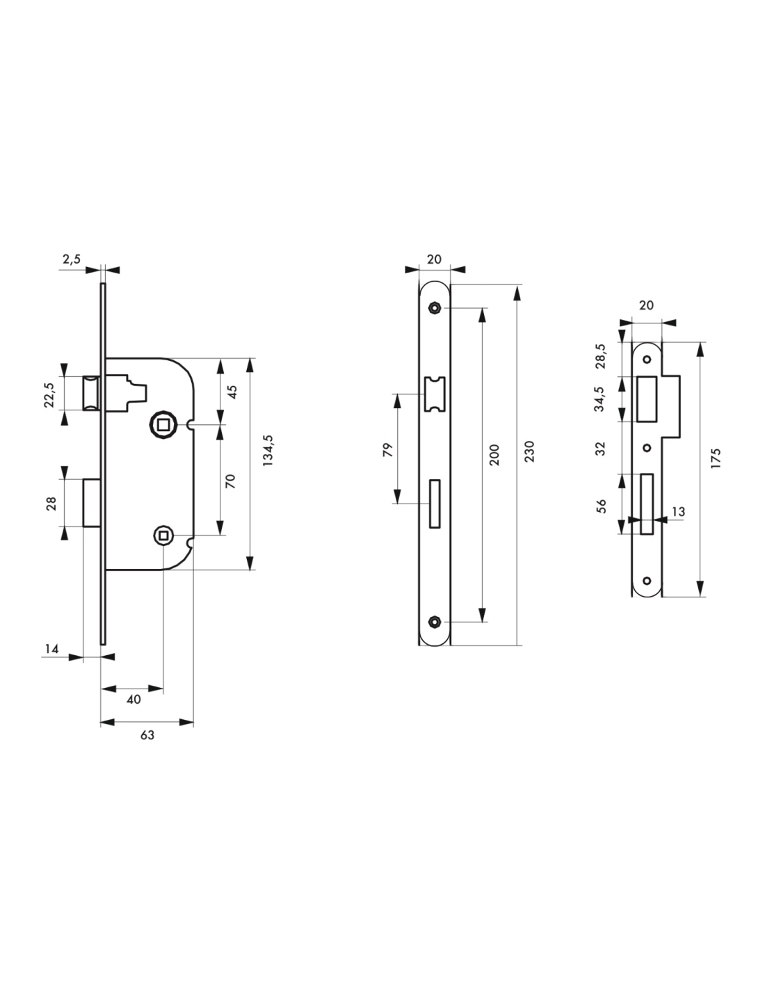 Ce modèle est conçu pour être encastré dans la porte. Il est accompagné d’une gâche (plate) à fixer sur le montant de porte opposé, pour assurer la fermeture.