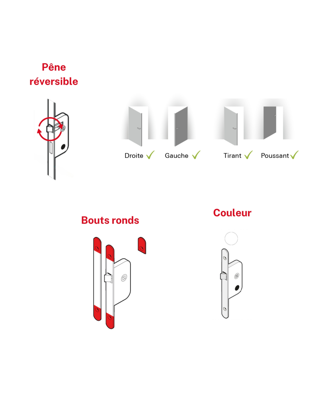 • Adaptée pour portes de salle de bain, toilettes ou portes intérieures nécessitant condamnation