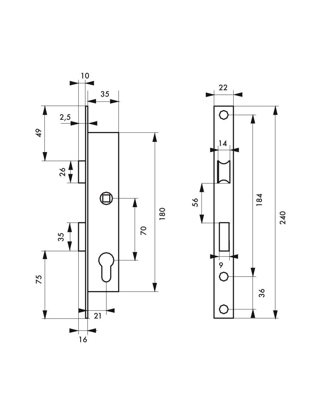 Ensemble de poignées pour porte d'entrée Charon trou de cylindre, carré 7mm, entr'axes 195mm, acier rouillé - THIRARD