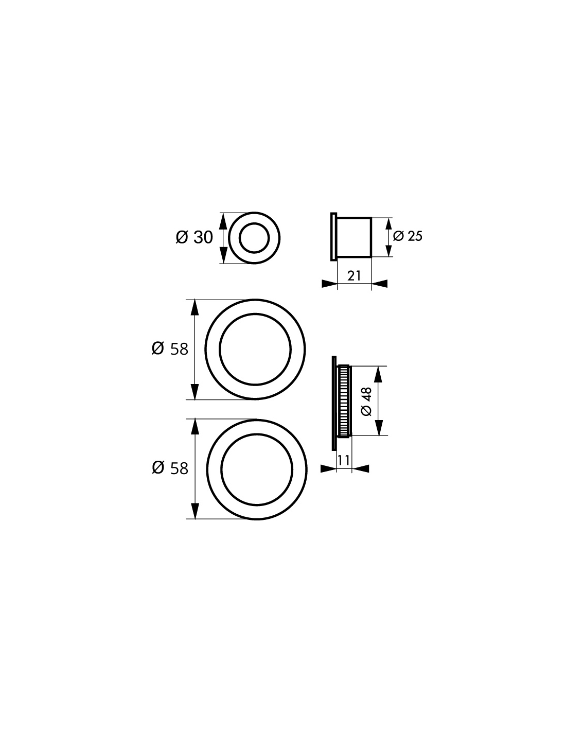 Paire de poignées cuvettes rondes encastrables pour porte coulissante, laitonné - THIRARD