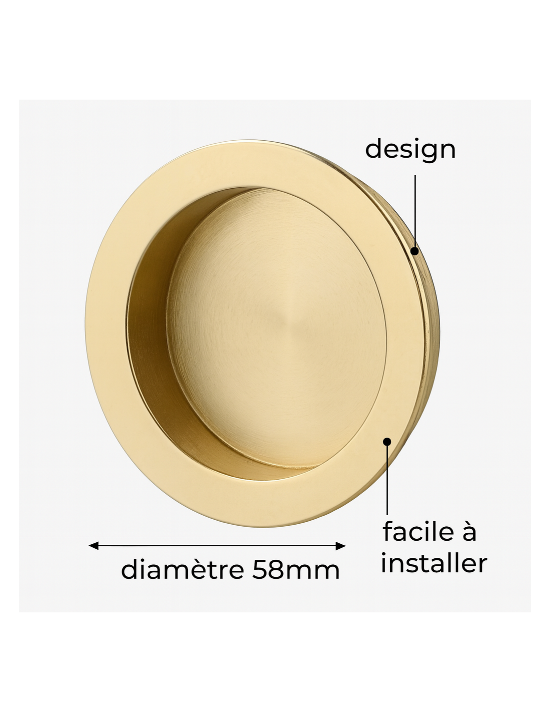 Paire de poignées cuvettes rondes encastrables pour porte coulissante, laitonné - THIRARD FBA