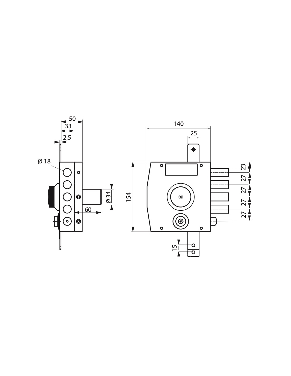 Serrure en applique à bouton pour porte d'entrée, 154x140mm, 3 pts, droite, 5 clés - THIRARD