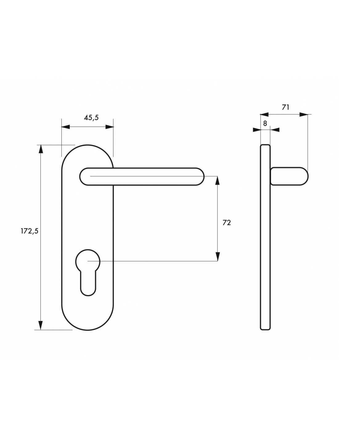 • Type de poignée : Trou de cylindre ;