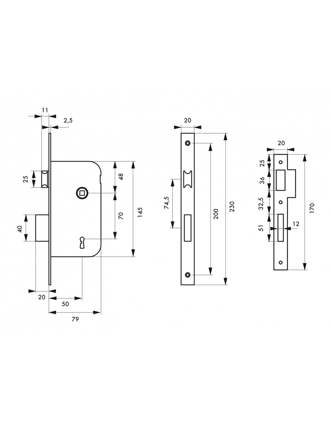 Ensemble de poignées pour porte d'entrée Charon trou de cylindre, carré 7mm, entr'axes 195mm, acier rouillé - THIRARD