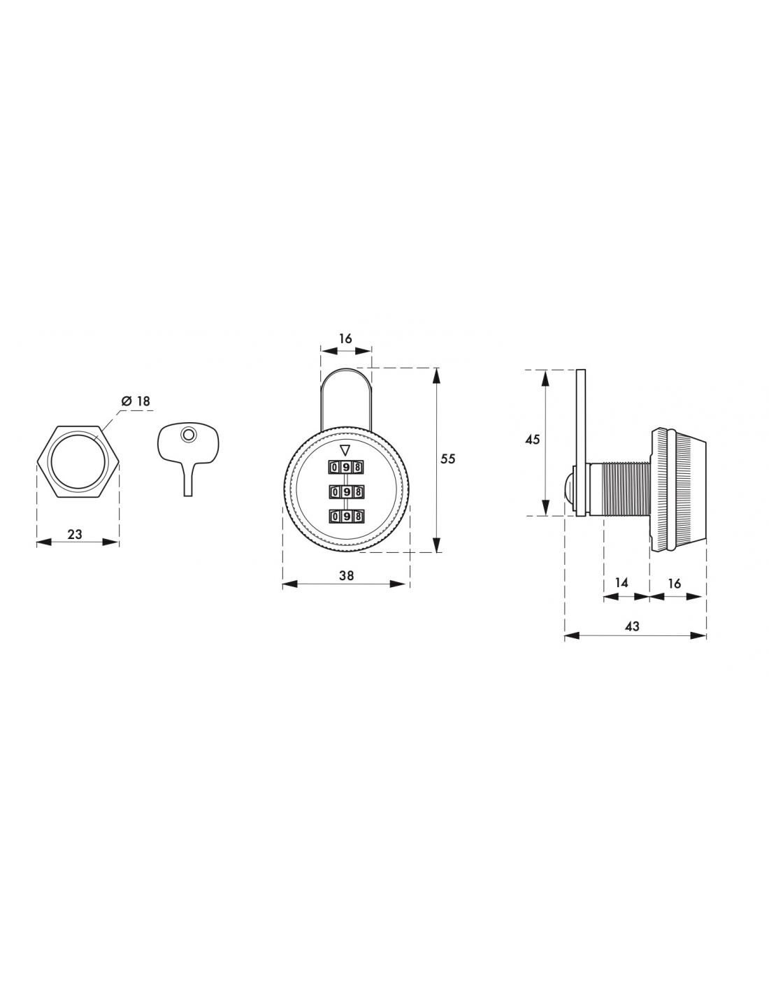 Batteuse pour boîte aux lettres à combinaison, 3 chiffres, came plate, chromé - THIRARD FBA