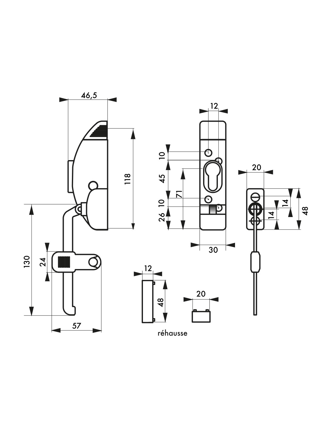 Entrebailleur à cylindre pour fenêtre, 118x130mm, blanc, 3 clés - THIRARD
