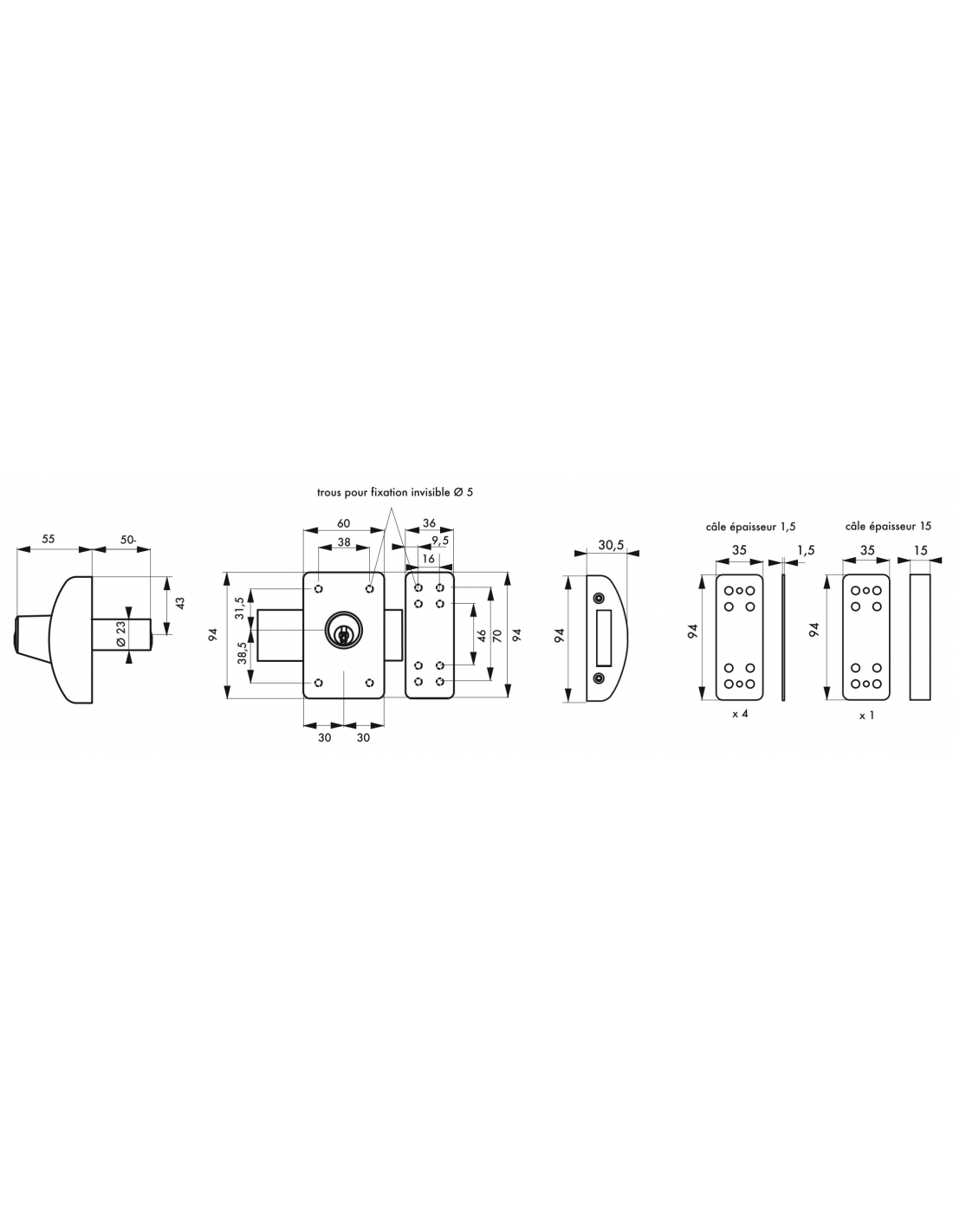 Ensemble de poignées pour porte d'entrée Charon trou de cylindre, carré 7mm, entr'axes 195mm, acier rouillé - THIRARD