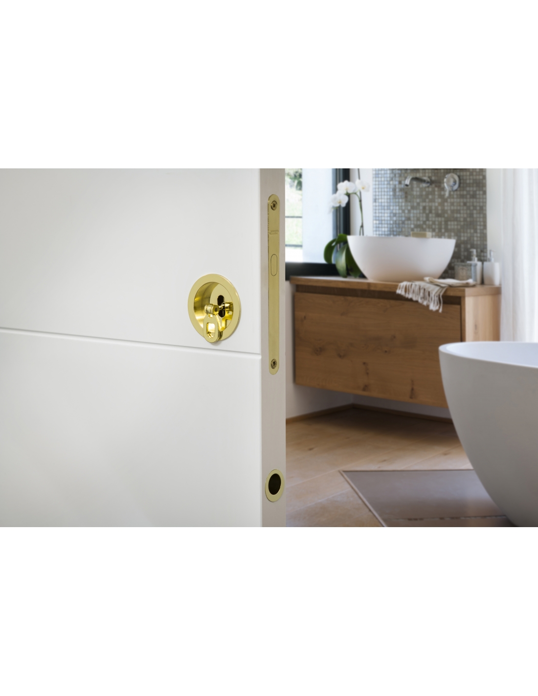Serrure encastrable à crochet à clé pour porte de chambre coulissante, axe 50mm, bouts ronds, laiton - THIRARD FBA