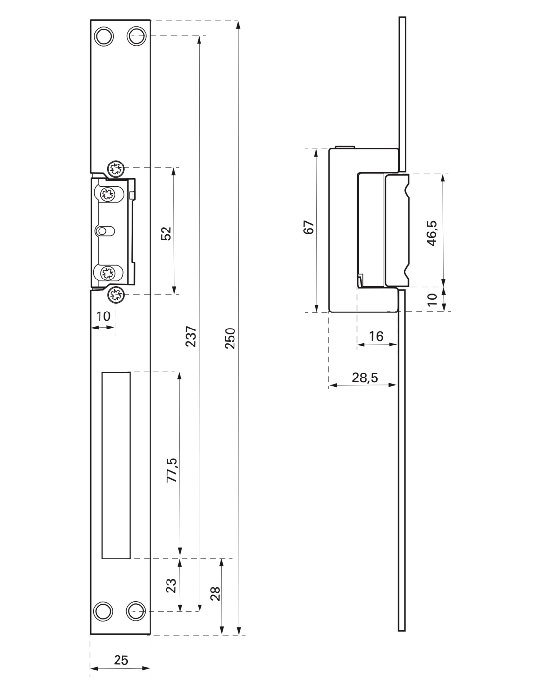 Corps alliage. Têtière inox. Double empennage. Réversible et symétrique. Levier de déverrouillage. Rouleau réglable. Résistance à l’effraction : 300daN.
