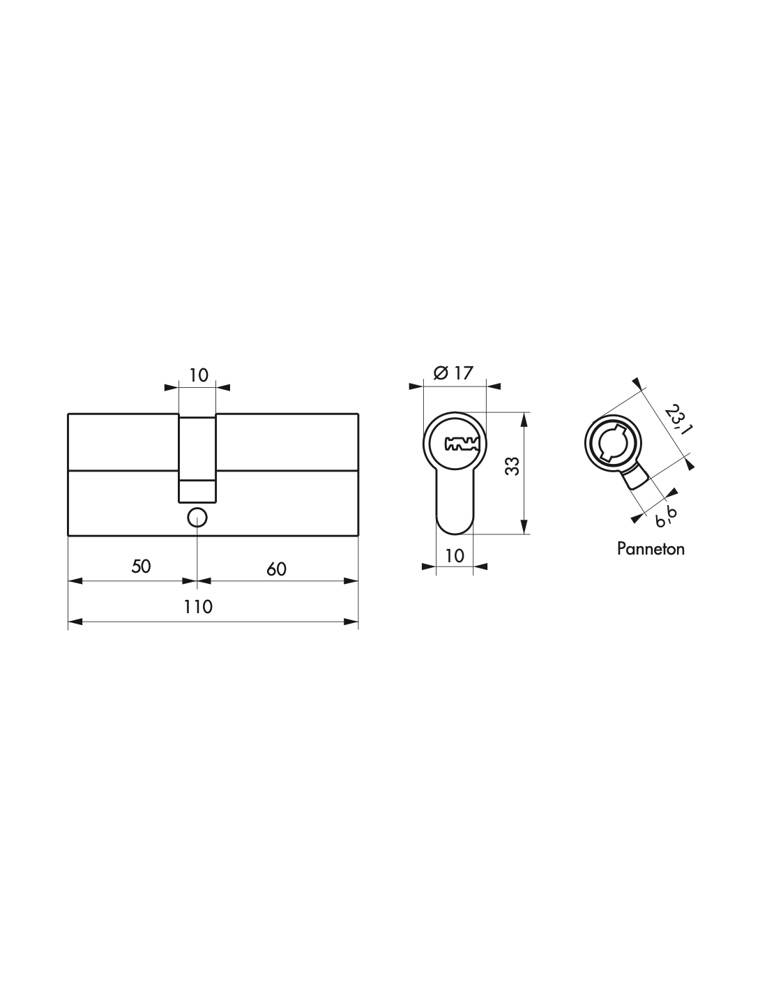 • Cylindre de serrure Transit 1, 50x60mm
