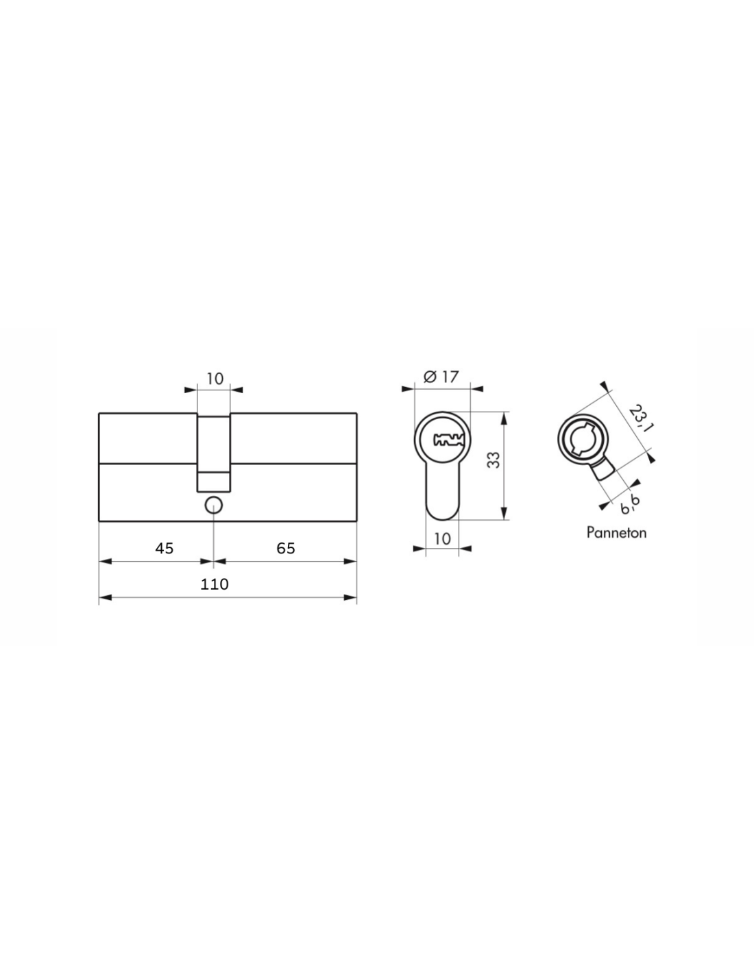 Cylindre de serrure à  double entrée Tiger 6 Dynamic, 45x65mm, nickelé, anti-arrachement, anti-perçage, 5 clés - SP FBA