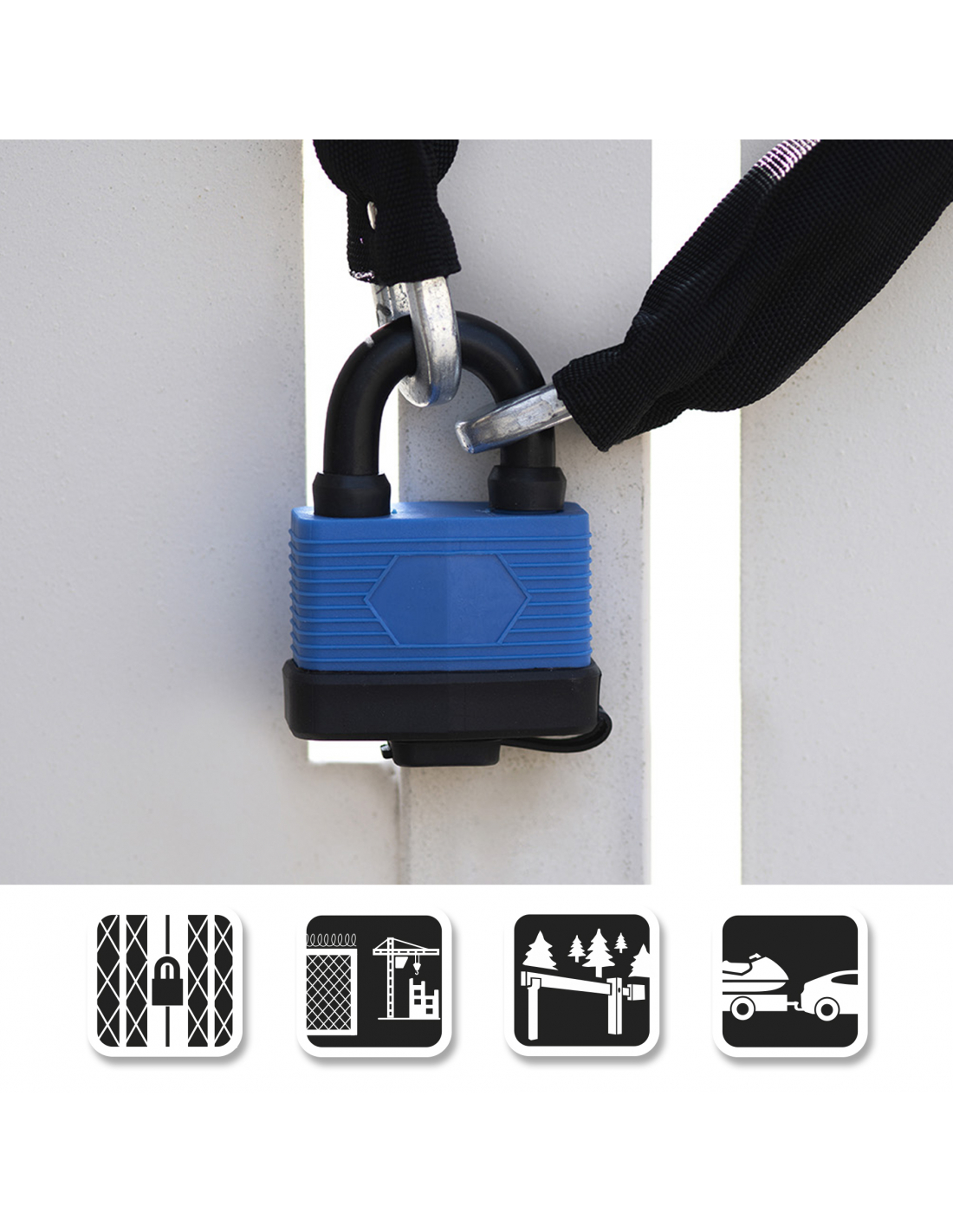 Garantissant un verrouillage efficace de vos armoires ou dépendances de jardin, ce cadenas à clé en lamelles d’acier gainé en PVC coloré est spécialement conçu pour une utilisation en extérieur. Deux clés plates en acier sont fournies avec ce cadenas, pour pouvoir partager l’accès ou pour conserver en cas de perte. Fabriqué à partir de lamelles d’acier, le cadenas Slice est très résistant aux chocs et étanche aux intempéries pour garantir la sécurité de vos biens. Ce cadenas à clé de la maque Thirard est disponible en plusieurs coloris aléatoires.