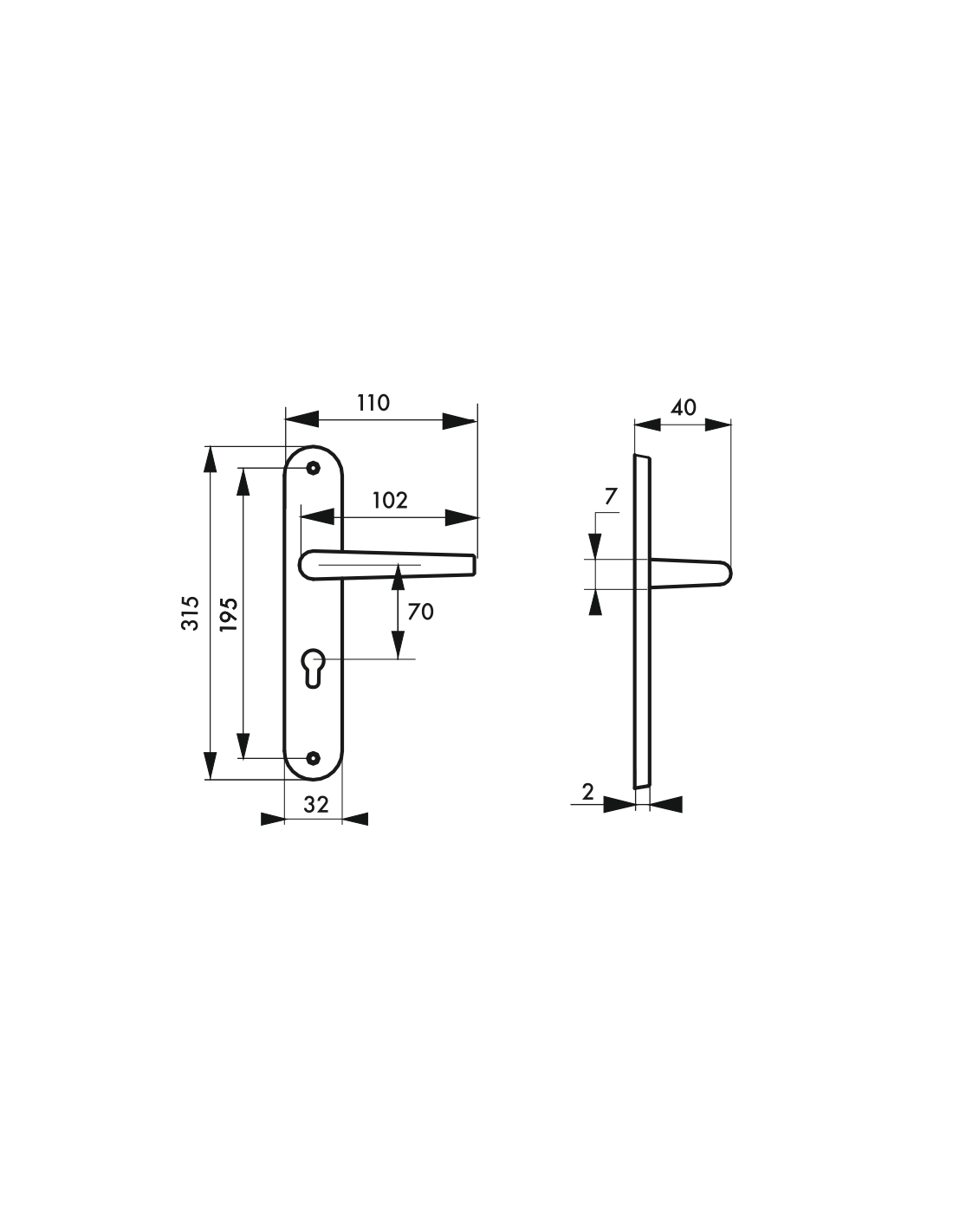 Ensemble de poignées pour porte d'entrée Coq trou de cylindre, carré 7mm, entr'axes 195mm, laqué noir - THIRARD