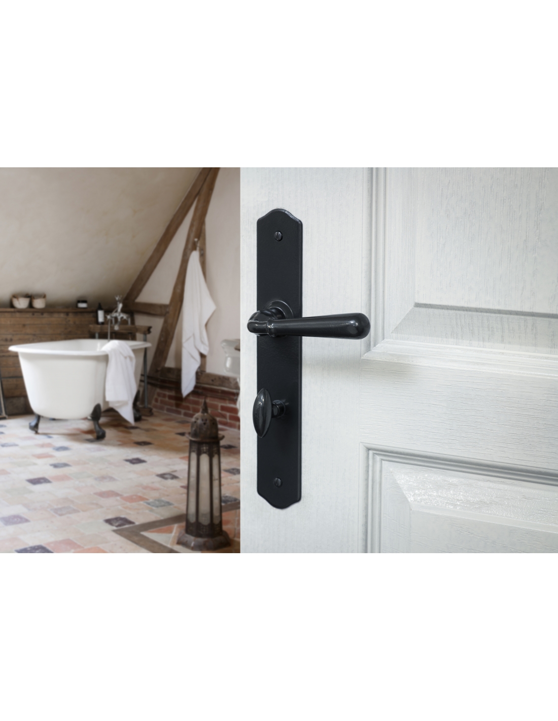 Ensemble de poignées pour salle de bain/bain Charon à condamnation, carré 7mm, entr'axes 195mm, acier patiné - THIRARD