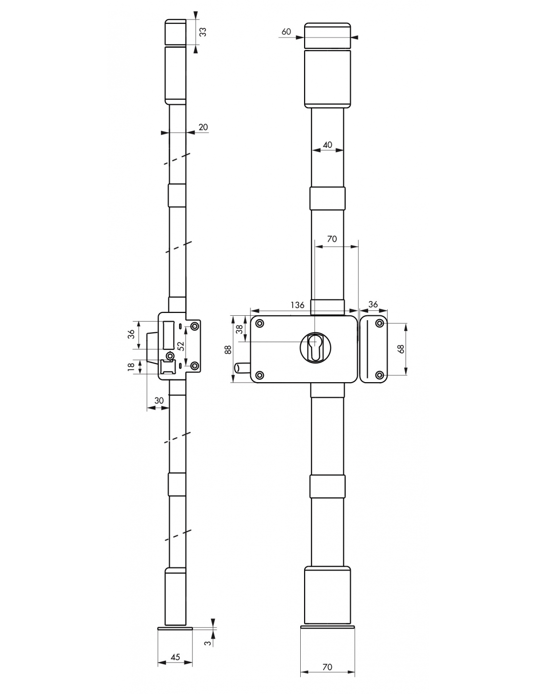 Serrure, Serrures en applique , Serrures multipoints, Serrures 3 points, Serrure 3 points en applique, Serrure pour porte d'entrée, Serrures 3 points Horga, Serrure en applique pour porte d'entrée