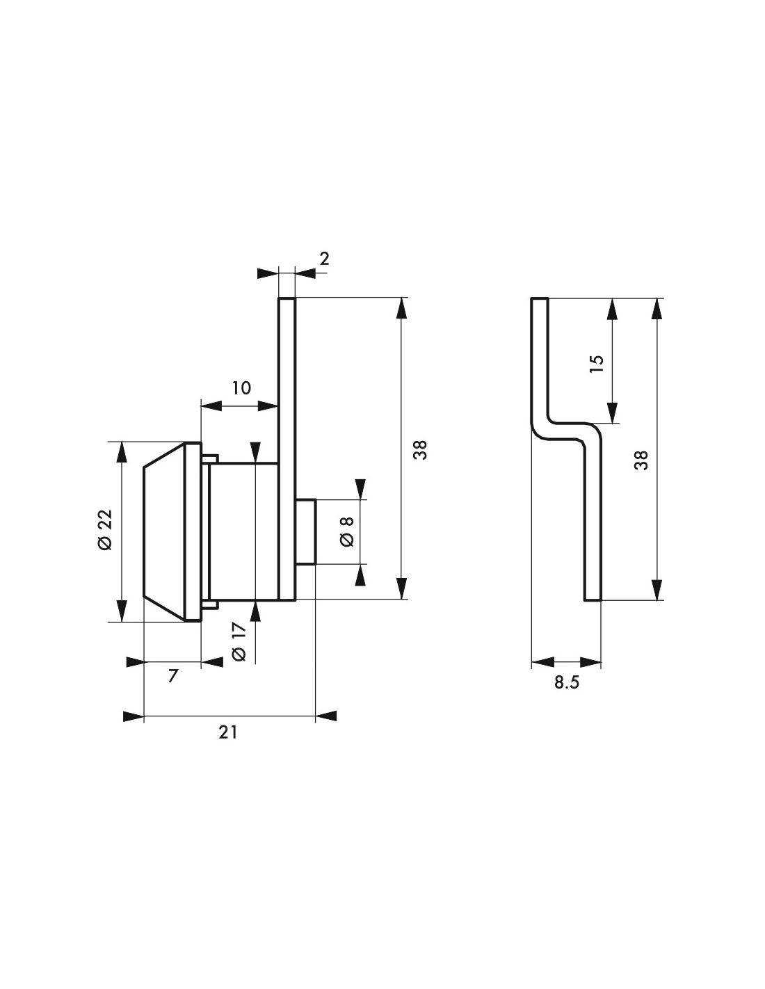 Batteuse nickelée pour boîte aux lettres, came 12h, coudée vers la face, pour tôle 0.8 à 1.2mm, 2 clés - Serrurerie de Picardie