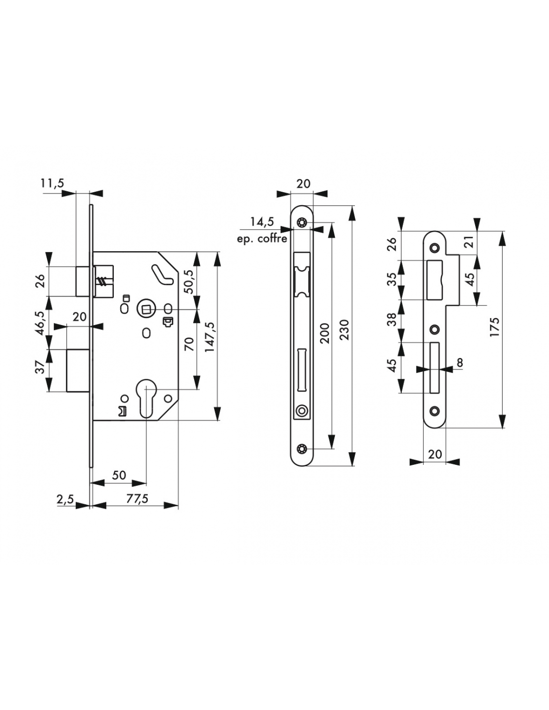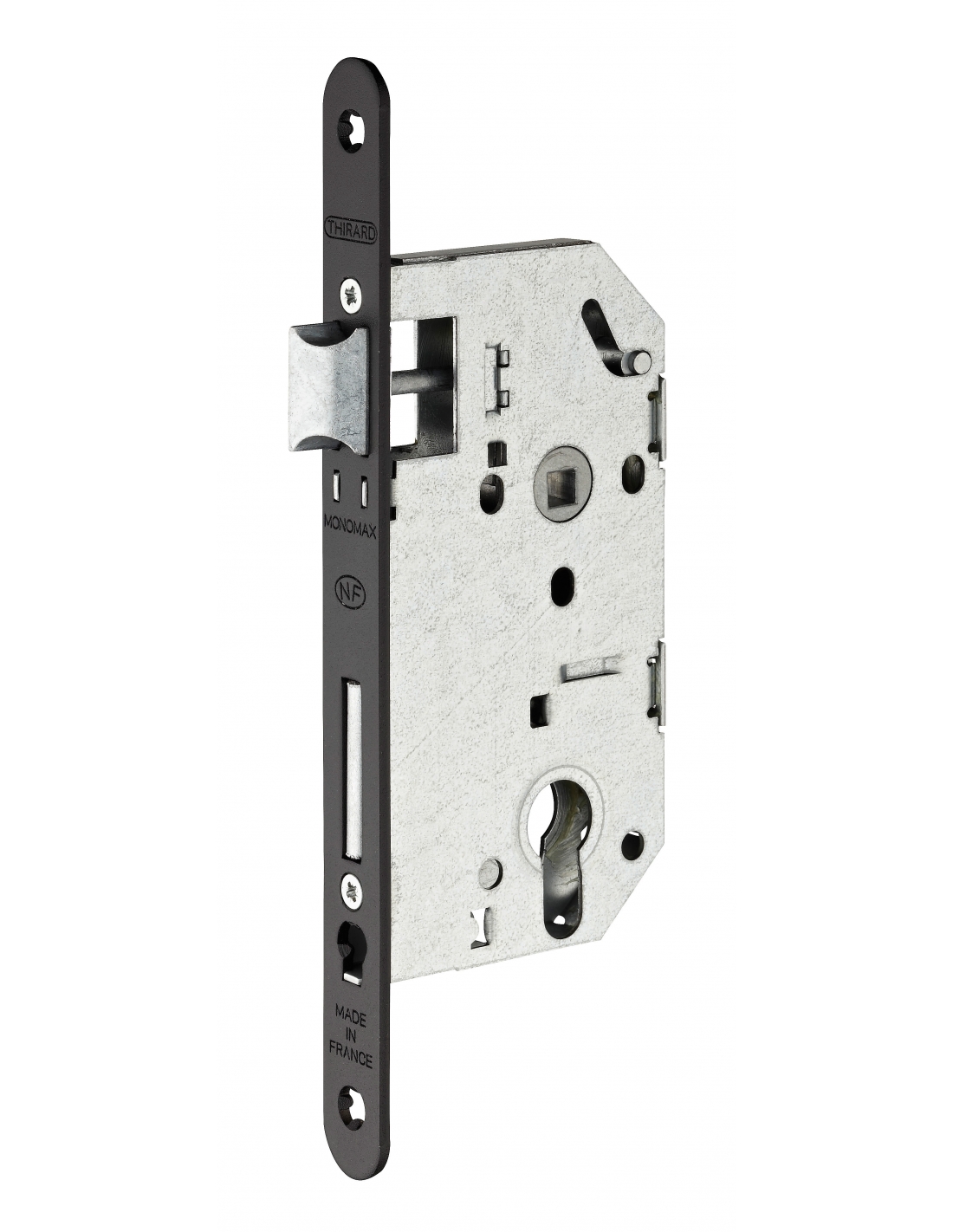 Profil européen laiton. Mécanisme à 10 goupilles. Protection contre le perçage par aiguille en acier trempé. Panneton anti arrachement. 5 clés plates réversibles acier nickelé.