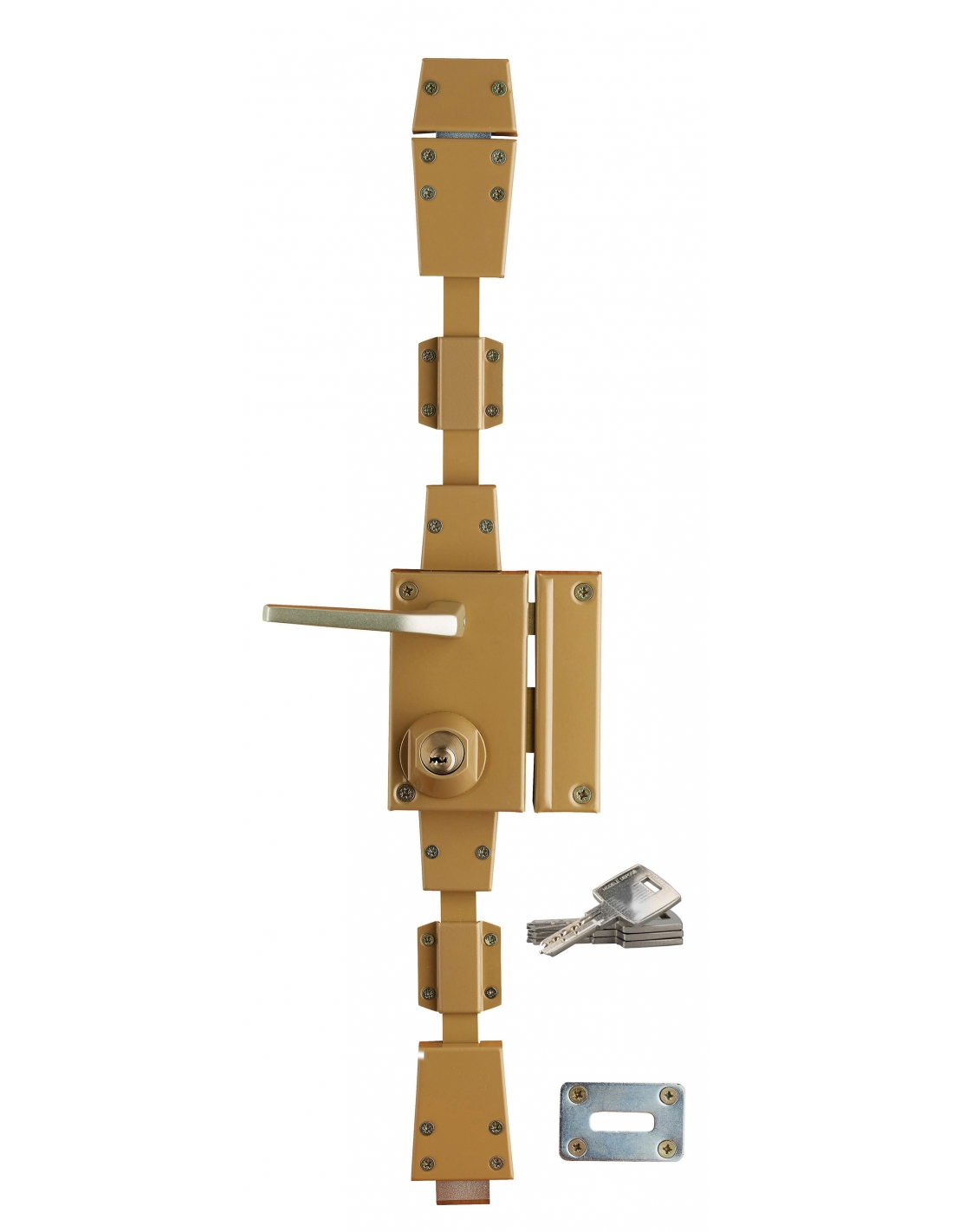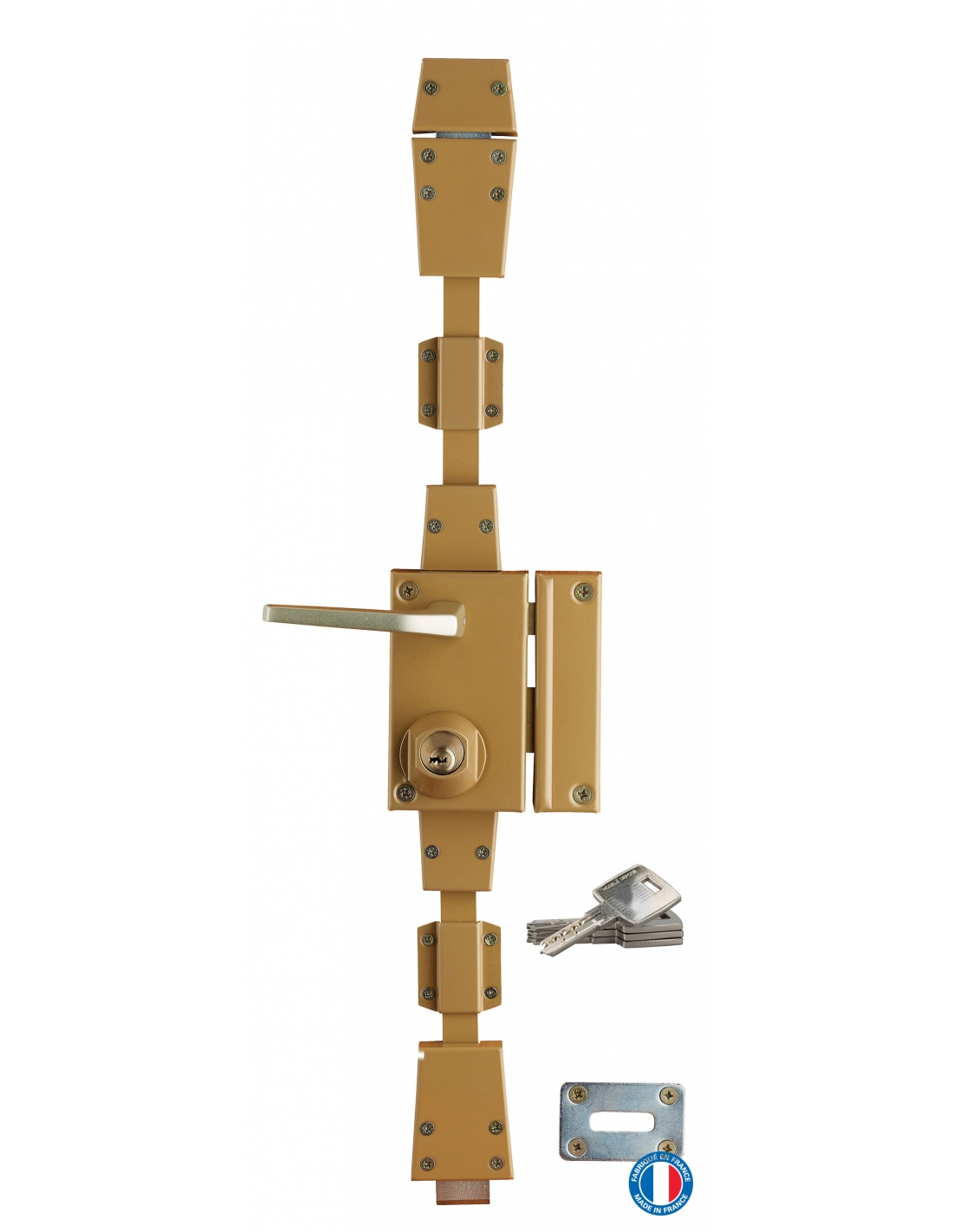 Serrure en applique à cylindre à fouillot pour entrée, 3 pts, droite, bronze, 4 clés réversibles - Serrurerie de Picardie
