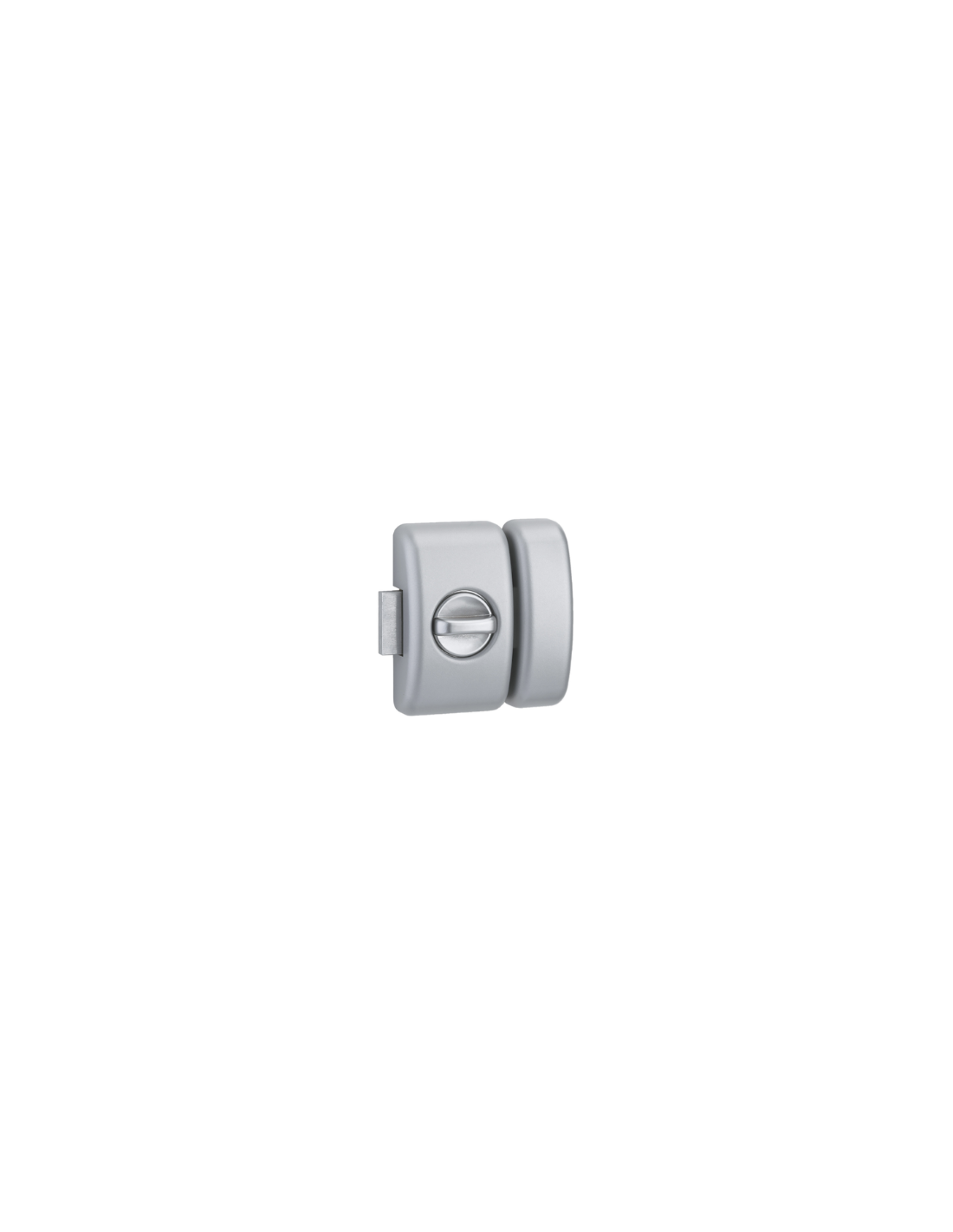 Sa conception robuste repose sur des supports de coffre et de gâche en acier cambré zingué, associés à des capots en alliage pour une meilleure résistance dans le temps. Le pêne en acier chromé satin assure un verrouillage fiable, tandis que le bouton en ABS chromé satin offre une manipulation confortable et une finition soignée.