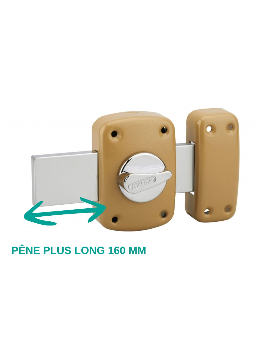 Verrou à bouton Corvette pour porte de garage, cylindre 30mm, pêne 160mm, acier, 3 clés, époxy bronze - THIRARD Verrous